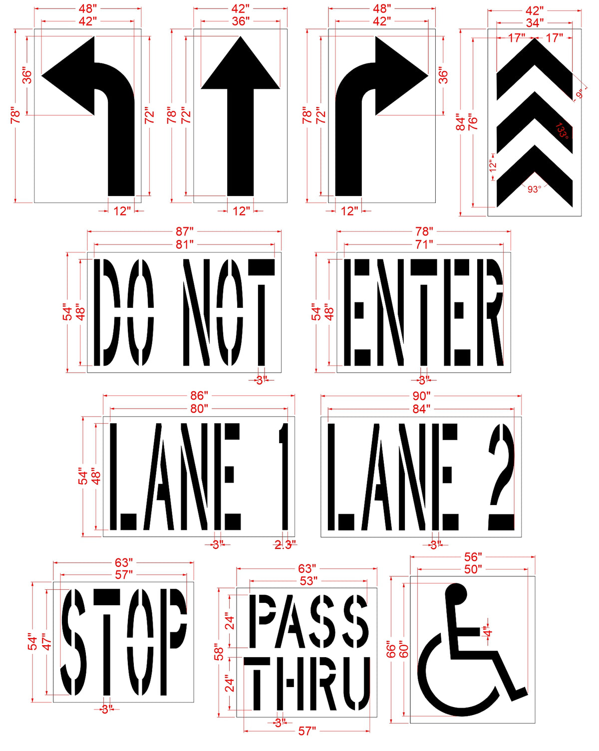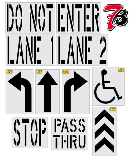 This {11 pc} 7Brew Striping Stencil Kit is designed to be used on flat surfaces such as a parking lot or on a sign to help direct 7Brew customers with all their needs. This kit has 11 stencils and it is perfect for achieving all of your 7Brew striping in one set. The simple illustration makes it easy to understand for anyone. All 1-800-Stencil’s are professional quality and made from either Light or Pro-Grade LDPE, Aluminum, or optional UHMW plastic to all last for years of professional use.