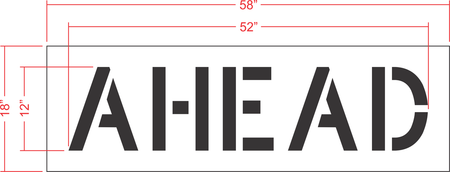 Typically used in conjunction with a STOP stencil, or PED X-ING, this 12 inch AHEAD stencil is very handy to have. The 12" font is typically used in lower speed applications such as: bike lanes, parking lots, drive throughs, and walkways. If traffic is estimated to be over 10 mph, consider using an 18" or 24" AHEAD stencil. All 1-800-Stencil’s are professional quality and made from either Light or Pro-Grade LDPE, Aluminum, or optional UHMW plastic to all last for years of professional use.