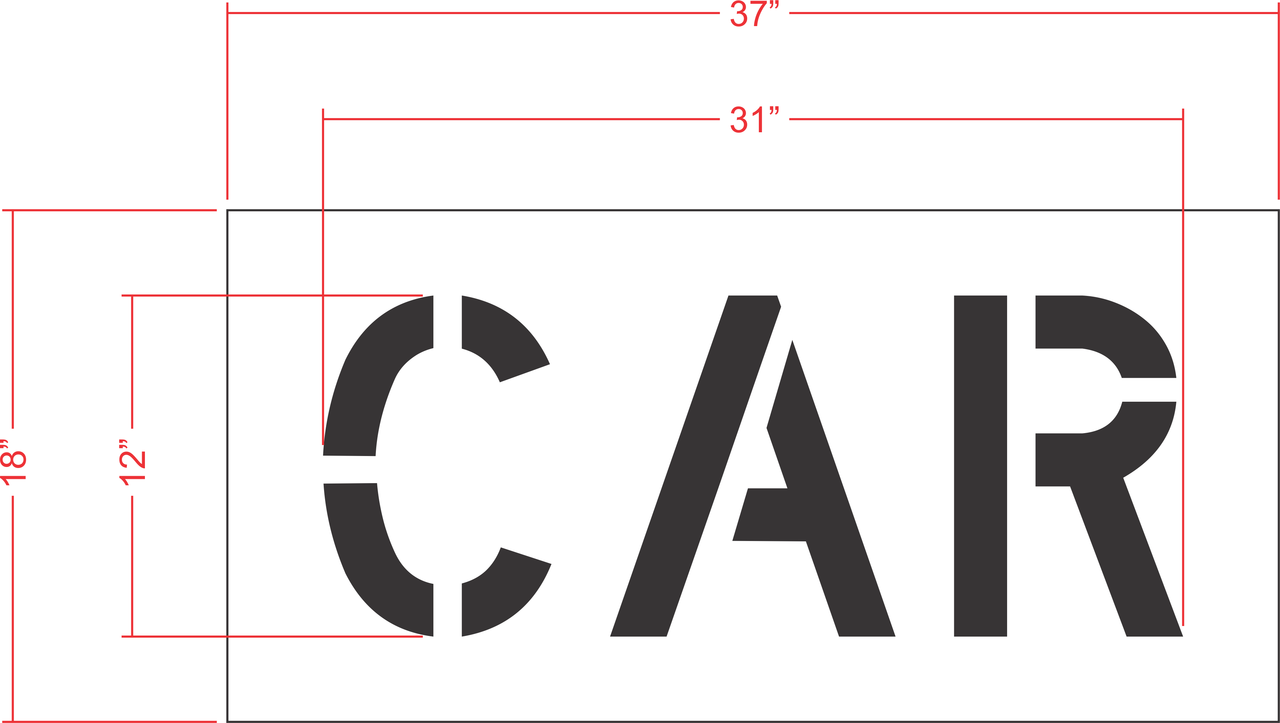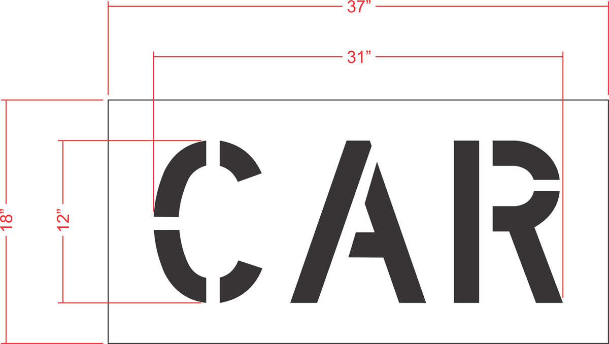 The 12 inch CAR stencil is a great stencil to have in anyone's arsenal of stencils at their disposal because it can be pairs with many other words. This 12" CAR stencil has a width of 31", a letter height of 12", and our standard 3" of overspray. All 1-800-Stencil’s are professional quality and made from either Light or Pro-Grade LDPE, Aluminum, or optional UHMW plastic to all last for years of professional use.