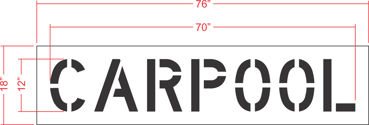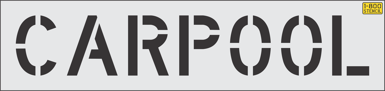The 12 inch CARPOOL stencil would be a great addition to any parking lot because it is small enough to fit a parking stall but large enough to be seen. The 12" CARPOOL stencil has a width of 70" and a letter height of 12" along with our standard 3" of overspray. All 1-800-Stencil’s are professional quality and made from either Light or Pro-Grade LDPE, Aluminum, or optional UHMW plastic to all last for years of professional use.
