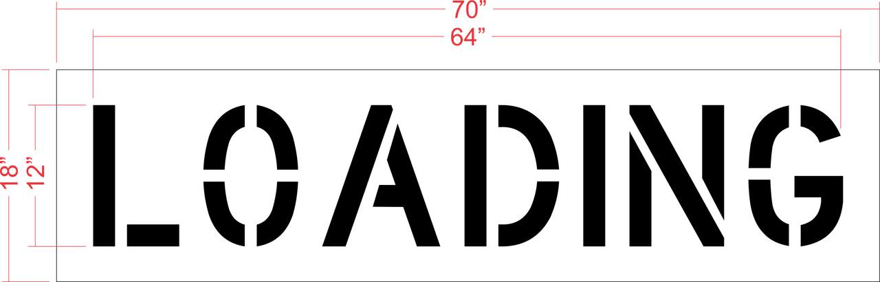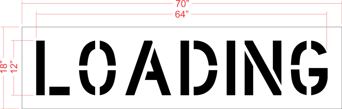 The 12 inch LOADING is the ideal size for parking lots that have a LOADING area or warehouses that have LOADING docks or LOADING zones. This 12 inch LOADING stencil is usually paired with a 12" ZONE, 12" DOCK, or a 12" ONLY. This is a great stencil to have with you on a job site to make a parking lot look complete. All 1-800-Stencil’s are professional quality and made from either Light or Pro-Grade LDPE, Aluminum, or optional UHMW plastic to all last for years of professional use.