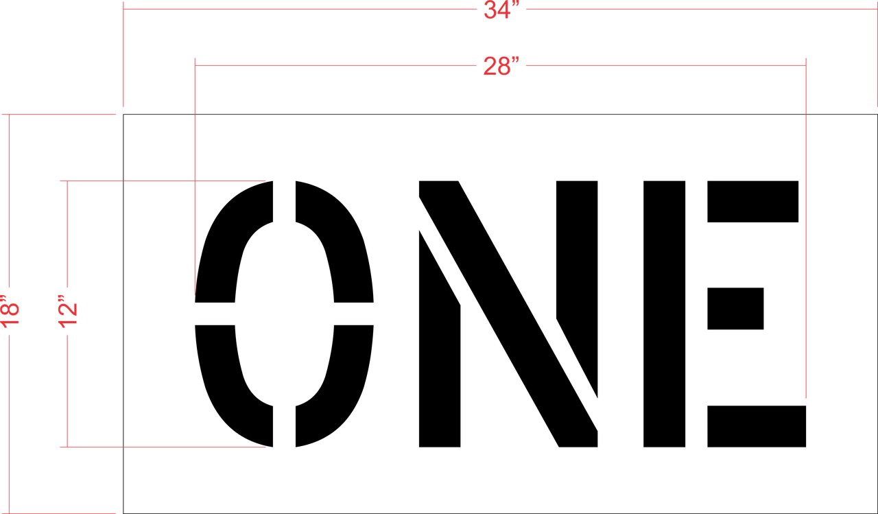 This 12 inch ONE stencil is normally used with the 12 inch WAY stencil they are sold separately so a striper can stack the two words or use the 12 inch ONE with other words such as One at a time, and One lane ahead. All 1-800-Stencil’s are professional quality and made from either Light or Pro-Grade LDPE, Aluminum, or optional UHMW plastic to all last for years of professional use.