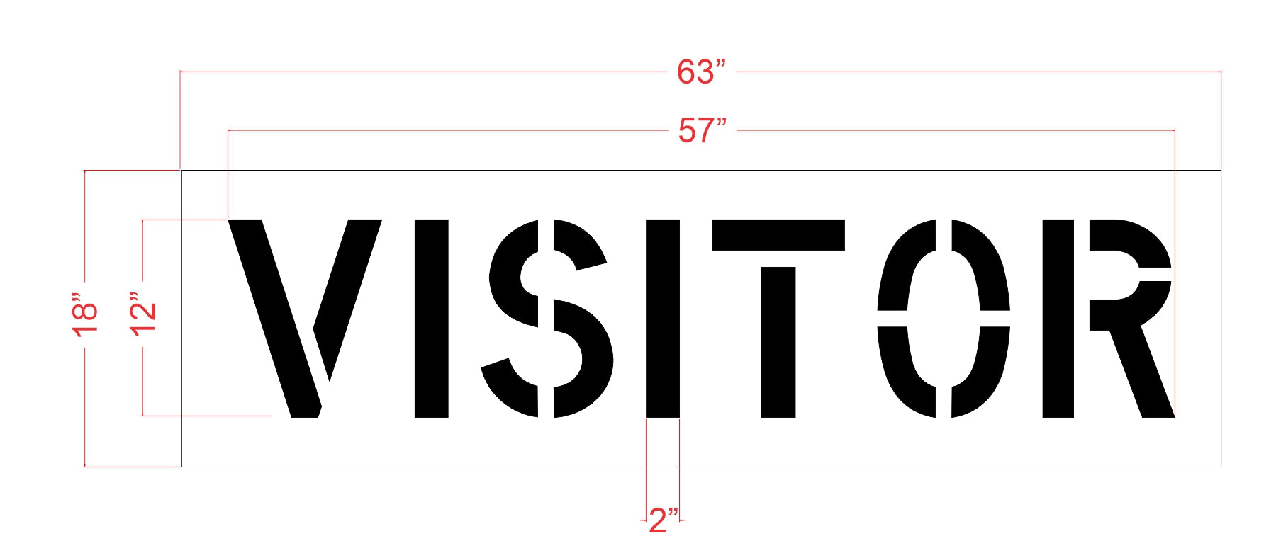 This 12 inch VISITOR stencil is the perfect fit for any parking space or in front of doors. The 12" VISITOR stencil is 57" wide and has a letter height of 12" along with our standard 3" of over spray. All 1-800-Stencil’s are professional quality and made from either Light or Pro-Grade LDPE, Aluminum, or optional UHMW plastic to all last for years of professional use.