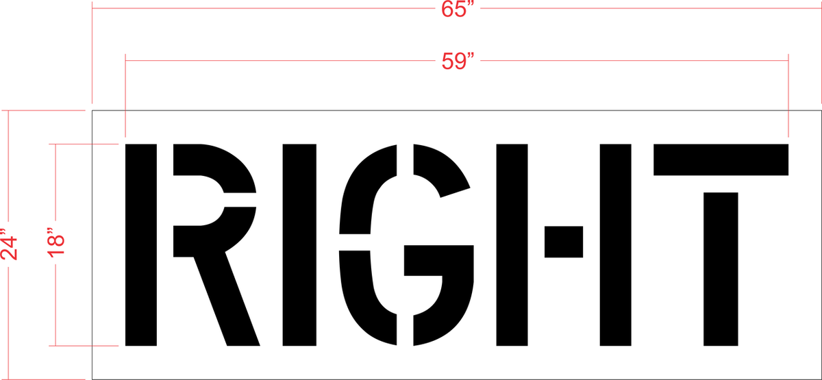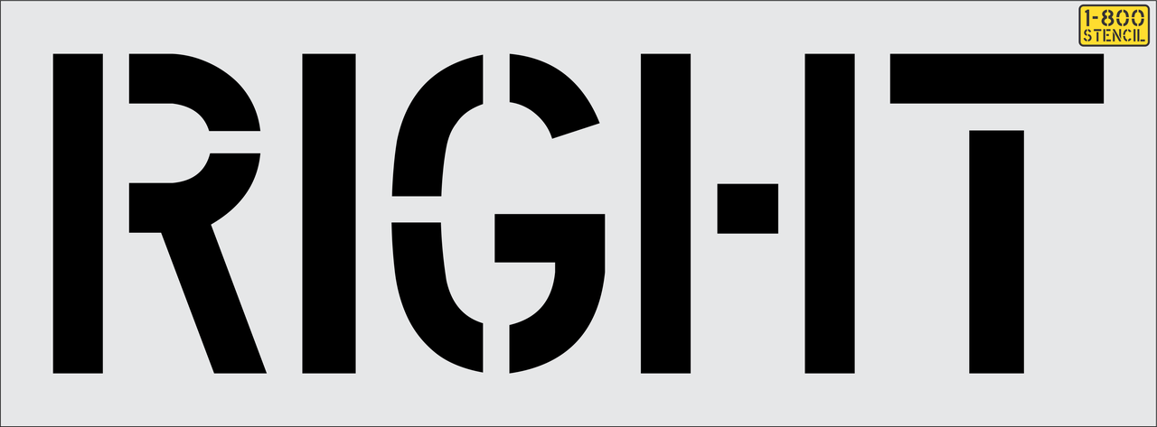 The 18 inch RIGHT stencil can work in perfect combination with a large turn arrow and the stencil turn, or the stencil turn and only. This stencil comes standard with a 3" overspray boarder. All 1-800-Stencil’s are professional quality and made from either Light or Pro-Grade LDPE, Aluminum, or optional UHMW plastic to all last for years of professional use.