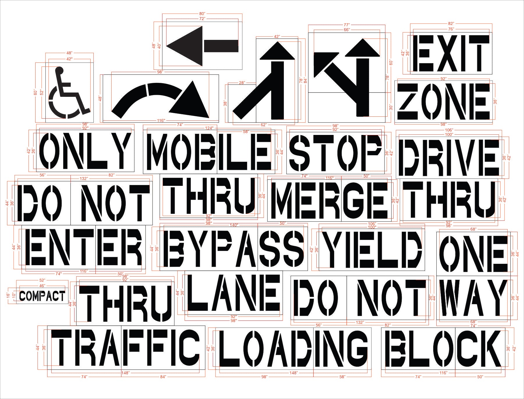 [{"id":156207448198,"handle":"pavement-marking-stencils-parking-lot-stencil-catalog","updated_at":"2026-01-06T16:06:34-06:00","published_at":"2019-12-02T06:56:31-06:00","sort_order":"best-selling","template_suffix":"","published_scope":"global","title":"All Pavement Marking Stencils","body_html":"\u003ch5\u003e\u003cspan\u003eUnlock the full potential of your pavement marking projects with our comprehensive collection of Pavement Stencils at 1-800-STENCIL. Tailored to suit a wide array of applications, from parking lot delineation to road signage and playground designs, our stencils are your go-to solution for creating clear, long-lasting markings. These stencils are meticulously designed for precision, ensuring that every application results in sharp, professional-looking results. Crafted with durability in mind, they are perfect for repeated use across various surfaces, making them a valuable asset for both professional contractors and ambitious DIYers. Easy to clean and maintain, our Pavement Stencils promise efficiency and effectiveness in every task. Explore our selection today and experience the ease of achieving perfect pavement markings with tools designed for success.\u003c\/span\u003e\u003c\/h5\u003e\n\u003ch5\u003eEach stencil is proudly made in the United States and are typically shipped the same day or within 1-day of ordering. All 1-800-Stencil’s are professional quality and made from either Light or Pro-Grade LDPE, Aluminum, or optional UHMW plastic to all last for years of professional use.\u003c\/h5\u003e"},{"id":202106896518,"handle":"chick-fil-a-parking-lot-drive-thru-pavement-stencils","title":"New 2025 Chick-Fil-A Spec","updated_at":"2025-12-27T06:27:46-06:00","body_html":"\u003ch3 style=\"margin: 0in;\"\u003e\u003cspan style=\"color: rgb(255, 255, 255);\"\u003e\u003cspan style=\"font-family: 'Segoe UI', sans-serif;\"\u003e\u003cimg src=\"https:\/\/cdn.shopify.com\/s\/files\/1\/0111\/0464\/9278\/files\/chick-fil-a-collection-banner.jpg?v=1747855828\" alt=\"\"\u003e\u003cbr\u003e\u003cstrong\u003e\u003cspan style=\"color: rgb(0, 0, 0);\"\u003eThis collection of \u003c\/span\u003e\u003c\/strong\u003e\u003c\/span\u003e\u003cstrong\u003e\u003cspan style=\"color: rgb(0, 0, 0);\"\u003e\u003cspan style=\"font-family: 'Segoe UI', sans-serif;\"\u003eChick Fil A stencils \u003c\/span\u003e\u003cspan style=\"font-family: 'Segoe UI', sans-serif;\"\u003ehas just been made to fit the new 2025 specification rollout. These are all Chick Fil A approved and will work for any\u003c\/span\u003e\u003cspan style=\"font-family: 'Segoe UI', sans-serif;\"\u003e \u003c\/span\u003e\u003cspan style=\"font-family: 'Segoe UI', sans-serif;\"\u003eof \u003c\/span\u003e\u003cspan style=\"font-family: 'Segoe UI', sans-serif;\"\u003etheir locations. Chick-Fil-A Pavement Stencils are made for re-striping and painting their parking lots, \u003c\/span\u003e\u003cspan style=\"font-family: Segoe UI, sans-serif;\"\u003eEach stencil is proudly made in the United States, and they are typically shipped the same day or within 1-day of ordering. All 1-800-Stencil’s are professional quality and made from either Light or Pro-Grade LDPE, Aluminum, or optional UHMW plastic to all last for years of professional use.\u003c\/span\u003e\u003c\/span\u003e\u003c\/strong\u003e\u003c\/span\u003e\u003c\/h3\u003e","published_at":"2020-09-14T20:47:42-05:00","sort_order":"best-selling","template_suffix":"","disjunctive":true,"rules":[{"column":"title","relation":"contains","condition":"Chick-Fil-A"},{"column":"title","relation":"contains","condition":"Chick Fil A"},{"column":"title","relation":"contains","condition":"Chick Fil-A"}],"published_scope":"global"},{"id":101971820606,"handle":"retail-chain-parking-lot-painting-word-wording-stencils","updated_at":"2026-01-06T16:06:34-06:00","published_at":"2021-03-02T10:28:51-06:00","sort_order":"best-selling","template_suffix":"","published_scope":"global","title":"Retail Chain Wording Stencils","body_html":"\u003ch5 data-mce-fragment=\"1\"\u003e\n\u003cspan data-mce-fragment=\"1\"\u003eThese are the most popular retail chain parking lot Wording Stencils. These are all made to the engineer specs for painting parking lots, entrances, and drive thru's for the\u003c\/span\u003e\u003cspan data-mce-fragment=\"1\"\u003e retail \u003c\/span\u003e\u003cspan data-mce-fragment=\"1\"\u003estores. \u003c\/span\u003e\u003cspan data-mce-fragment=\"1\"\u003eEach stencil is proudly made in the United States and they are typically shipped the same day or within 1-day of ordering. All 1-800-Stencil’s are professional quality and made from either Light or Pro-Grade LDPE, Aluminum, or optional UHMW plastic to all last for years of professional use.\u003c\/span\u003e\n\u003c\/h5\u003e"},{"id":101970772030,"handle":"wording-stencils-pavement-traffic-parking-lot","updated_at":"2026-01-06T16:06:34-06:00","published_at":"2021-03-02T10:32:39-06:00","sort_order":"best-selling","template_suffix":"","published_scope":"global","title":"Wording Stencils","body_html":"\u003ch5\u003e\u003cspan data-mce-fragment=\"1\"\u003eExplore our extensive collection of premium wording stencils at 1-800-STENCIL, designed to meet all your signage needs. Whether you're marking pavements, crafting wall messages, or enhancing your business signage, our stencils provide the precision and clarity you demand. Made with durability in mind, they are perfect for repeated use, ensuring you get maximum value from every stencil. From straightforward lettering to complex phrases, we offer a versatile range to suit various applications. Perfect for both professional contractors and DIY enthusiasts, our stencils make any project simple and effective. Browse our selection today and enjoy quick, reliable shipping on all orders.\u003c\/span\u003e\u003c\/h5\u003e\n\u003ch5\u003eSome of the words are complementary to each other such as \"GUEST\" and \"ONLY\", indicating that the parking spaces available are for guests only. The wording range f
