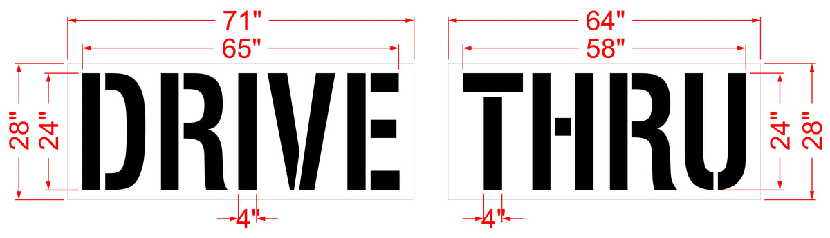 This 24 inch Walgreens DRIVE THRU is perfect for a small drive thru or to mark for no thru traffic. 1-800 STENCIL also offers other DRIVE THRU stencils that are retail specific such as McDonalds, Walgreens, etc. All 1-800-Stencil’s are professional quality and made from either Light or Pro-Grade LDPE, Aluminum, or optional UHMW plastic to all last for years of professional use.