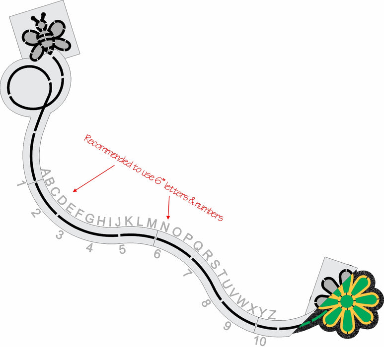 Calling all schools and playground enthusiasts! Transform your playground into a vibrant and engaging space with our 245 by 330 inch "Painted Bee Alphabet" Stencil! With our wide selection of playground stencils, you can bring your school playground to life. From hopscotch and animal tracks to educational games, our stencils offer endless possibilities to foster active play and learning. Our playground stencils are specifically designed with schools in mind, meeting safety standards and encouraging physical activity, social interaction, and imagination. All 1-800-Stencil’s are professional quality and made from either Light or Pro-Grade LDPE, Aluminum, or optional UHMW plastic to all last for years of professional use.Specifications
