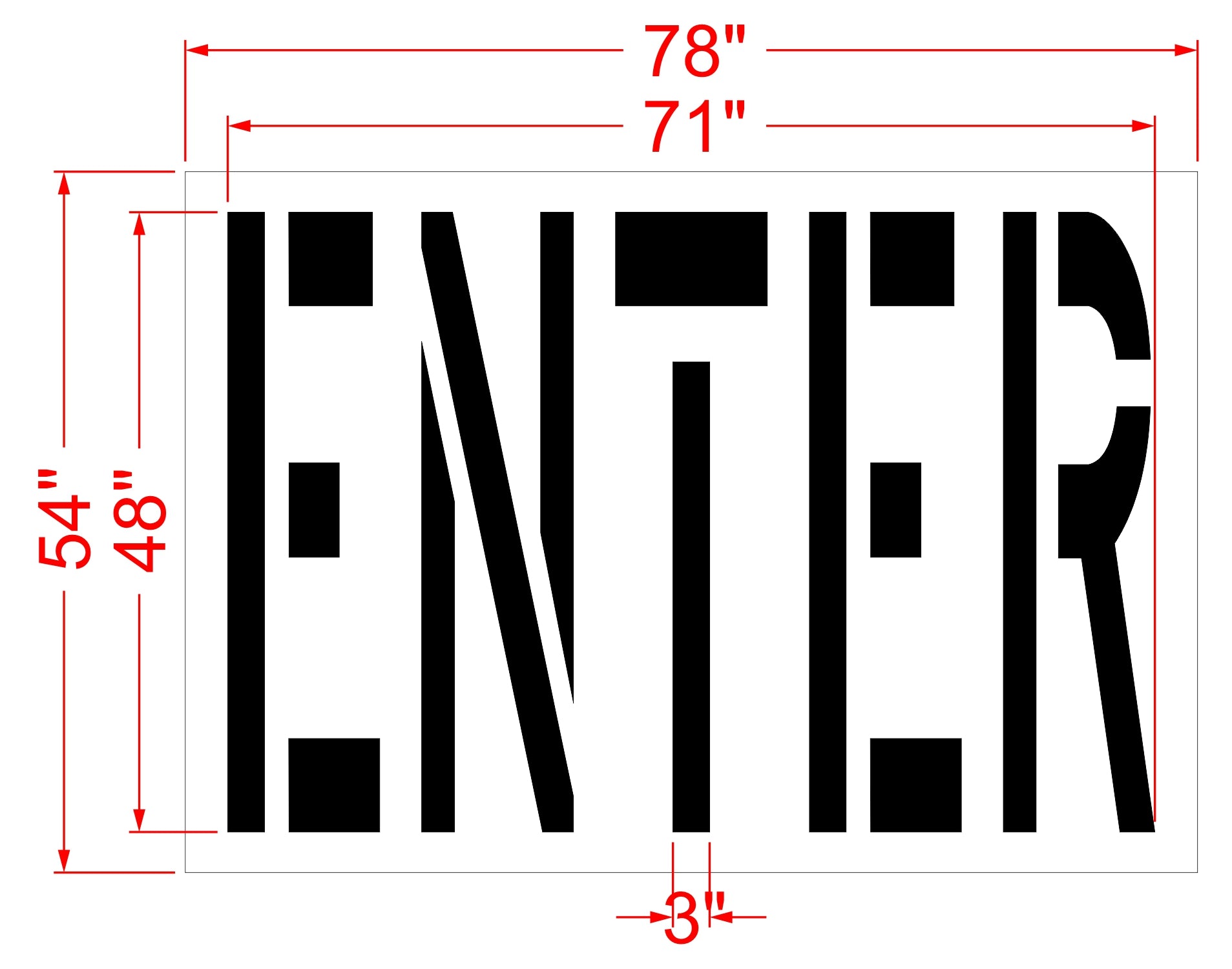 This 48 inch 7Brew "ENTER" Stencil is designed to be used on flat surfaces such as a parking lot or on a sign to make the area safer for both pedestrians and drivers. The materials we use at 1-800 Stencil are Substantial and Eco-friendly. All 1-800-Stencil’s are professional quality and made from either Light or Pro-Grade LDPE, Aluminum, or optional UHMW plastic to all last for years of professional use.