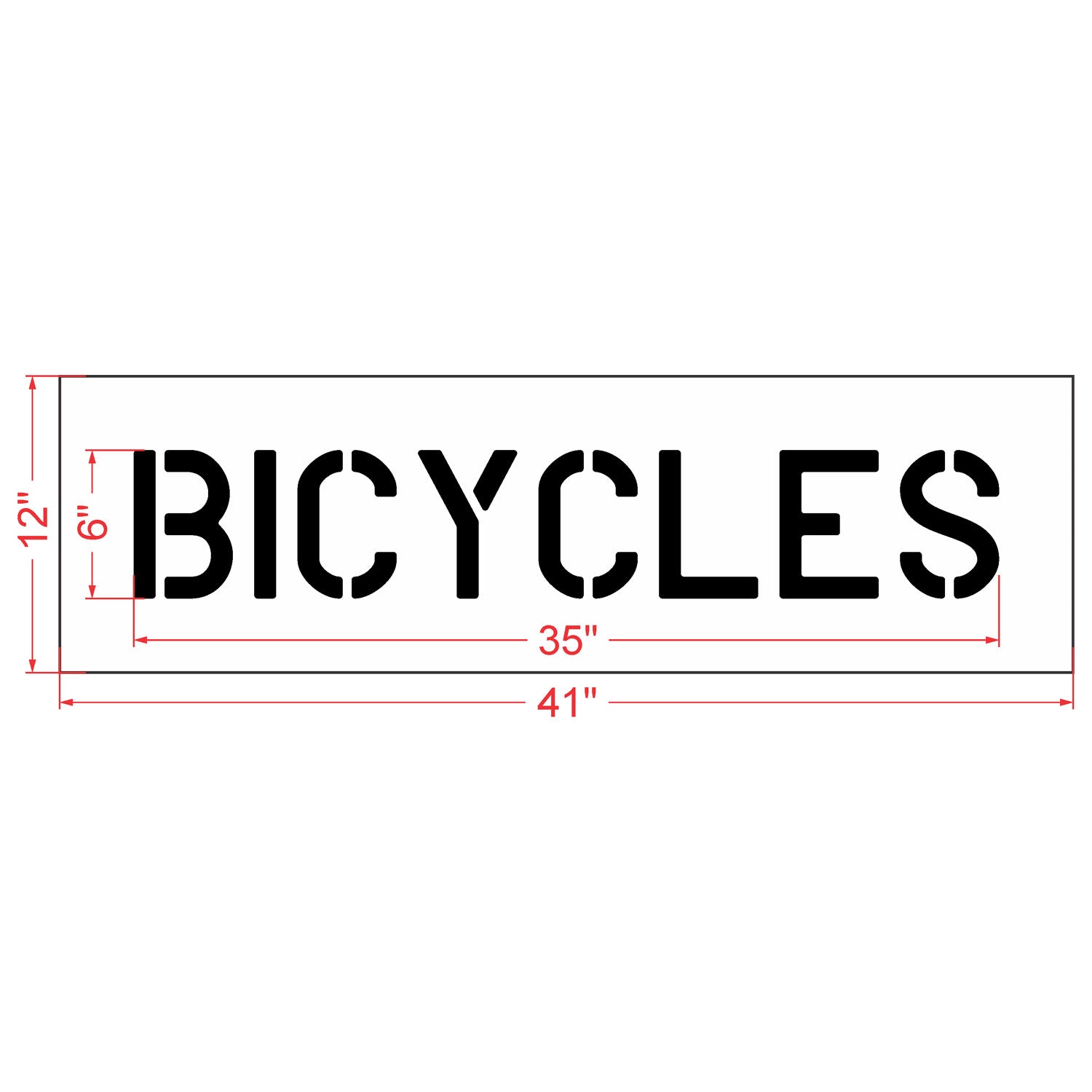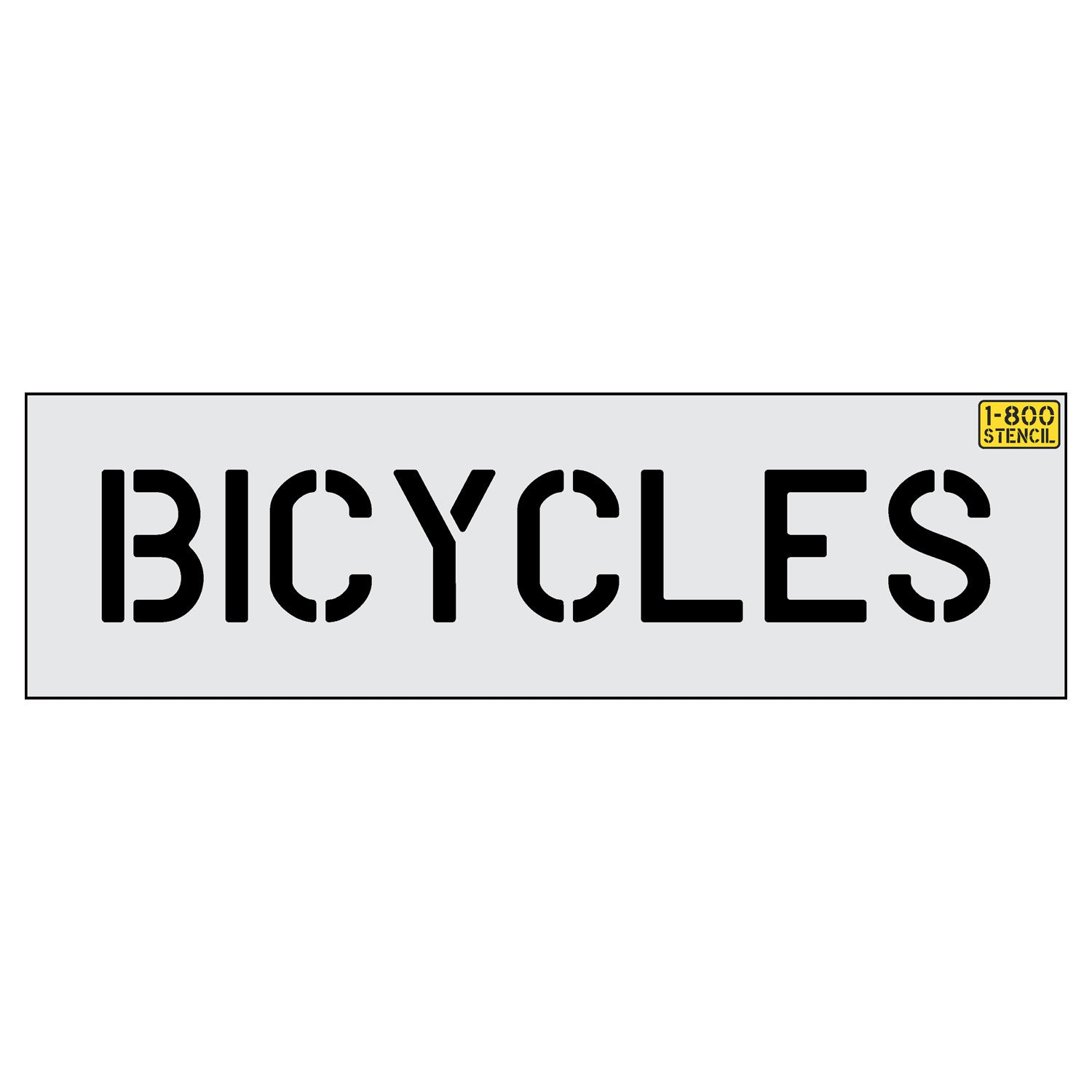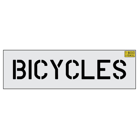 1-800-Stencil offers a 6 inch BICYCLES stencil that is a great choice for small parking lot jobs, as well as any warehouse jobs that may need BICYCLES indicated. This BICYCLES stencil has a standard 3" overspray on all sides to make application easy and clean. When it comes to marking specific sections of a parking lot, individually painting letters can be challenging. Utilizing a word stencil not only saves time and ensures accurate application but also guarantees proper spacing and alignment of the letters. All 1-800-Stencil’s are professional quality and made from either Light or Pro-Grade LDPE, Aluminum, or optional UHMW plastic to all last for years of professional use.