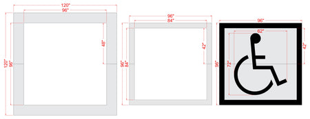 The 72 inch Handicap Pavement Marking (6-pc) Stencil is made with a 4" stroke and a 84" square border and a 96" background. This symbol meets ADA (Americans with Disabilities Act) standards and some state & local standards. This 72" Handicap Stencil is good for 2-color (blue/white) background with symbol parking stall markings. All 1-800-Stencil’s are professional quality and made from either Light or Pro-Grade LDPE, Aluminum, or optional UHMW plastic to all last for years of professional use.