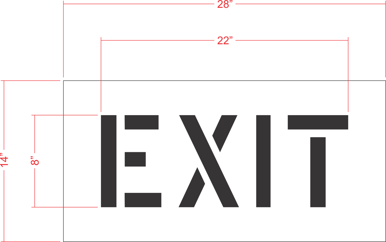 The 8 inch EXIT stencil can be used on sidewalks, pathways, and in warehouses because of its small height and a width smaller than 36". This 8" EXIT stencil has a letter height of 8" and an overall width of 22" with our standard 3" of overspray. All 1-800-Stencil’s are professional quality and made from either Light or Pro-Grade LDPE, Aluminum, or optional UHMW plastic to all last for years of professional use.