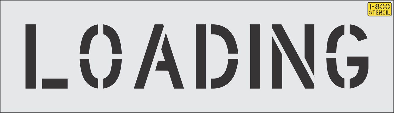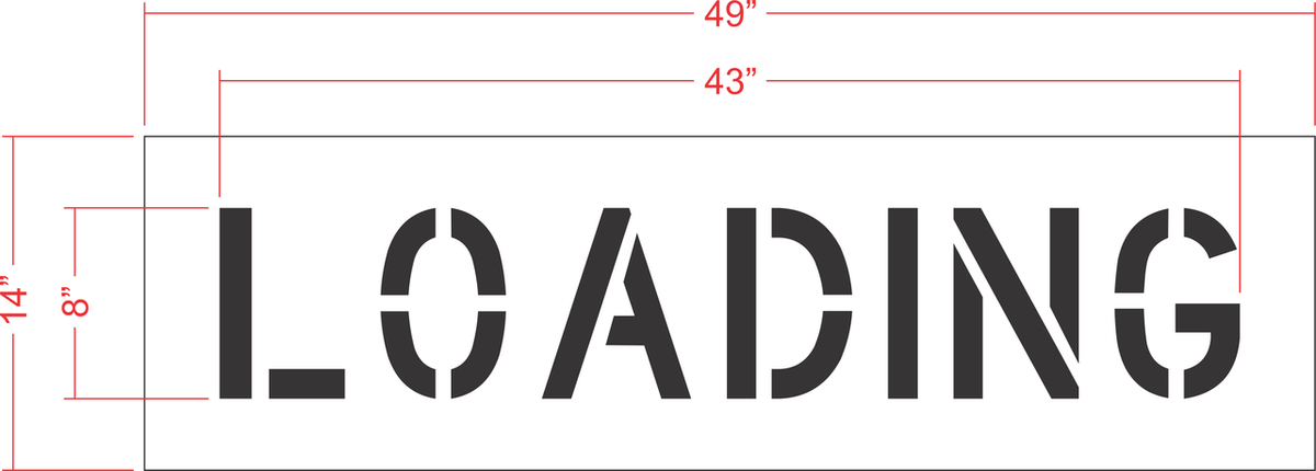 The 8 inch LOADING stencil can be used in front of garage doors, next to curbs, or in parking spots. This 8" LOADING stencil has a width of 43", a height of 8", and comes with our 3" of overspray. All 1-800-Stencil’s are professional quality and made from either Light or Pro-Grade LDPE, Aluminum, or optional UHMW plastic to all last for years of professional use.