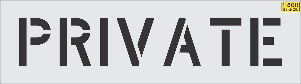 This 8 inch PRIVATE stencil is the perfect size to paint on garage doors, in front of doorway, or on private pathways. This 8" PRIVATE stencil have a width of 44", a height of 8", and comes with our standard 3" of overspray. All 1-800-Stencil’s are professional quality and made from either Light or Pro-Grade LDPE, Aluminum, or optional UHMW plastic to all last for years of professional use.