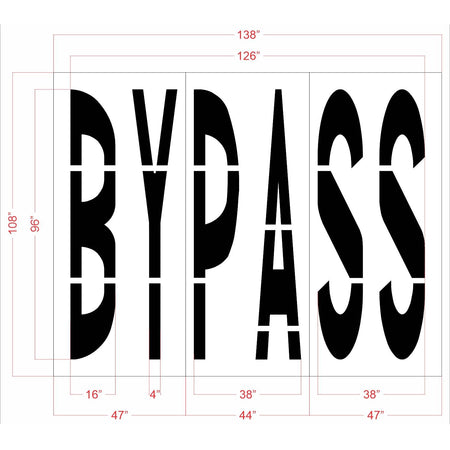 Pavement markings play a crucial role in directing, cautioning, and regulating traffic through the use of words, symbols, and arrows. These visible markings on the road surface are essential for guiding drivers, warning them of potential hazards, and ensuring proper traffic flow. That is why this 96 inch Florida MUTCD BYPASS stencil is made specifically to meet the specifications for the Department of Transportation's Manual on Uniform Traffic Control Devices or MUTCD. All 1-800-Stencil’s are professional quality and made from either Light or Pro-Grade LDPE, Aluminum, or optional UHMW plastic to all last for years of professional use.
